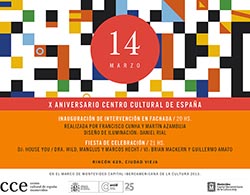 El Centro Cultural de España (CCE) en Montevideo (Uruguay) celebra hoy su décimo aniversario hoy con una gran fiesta con entrada libre y gratuita para todo el público. La jornada arrancará con la inauguración de una intervención artística de la fachada del centro, que han realizado los artistas Francisco Cunha y Martín Azambuja.