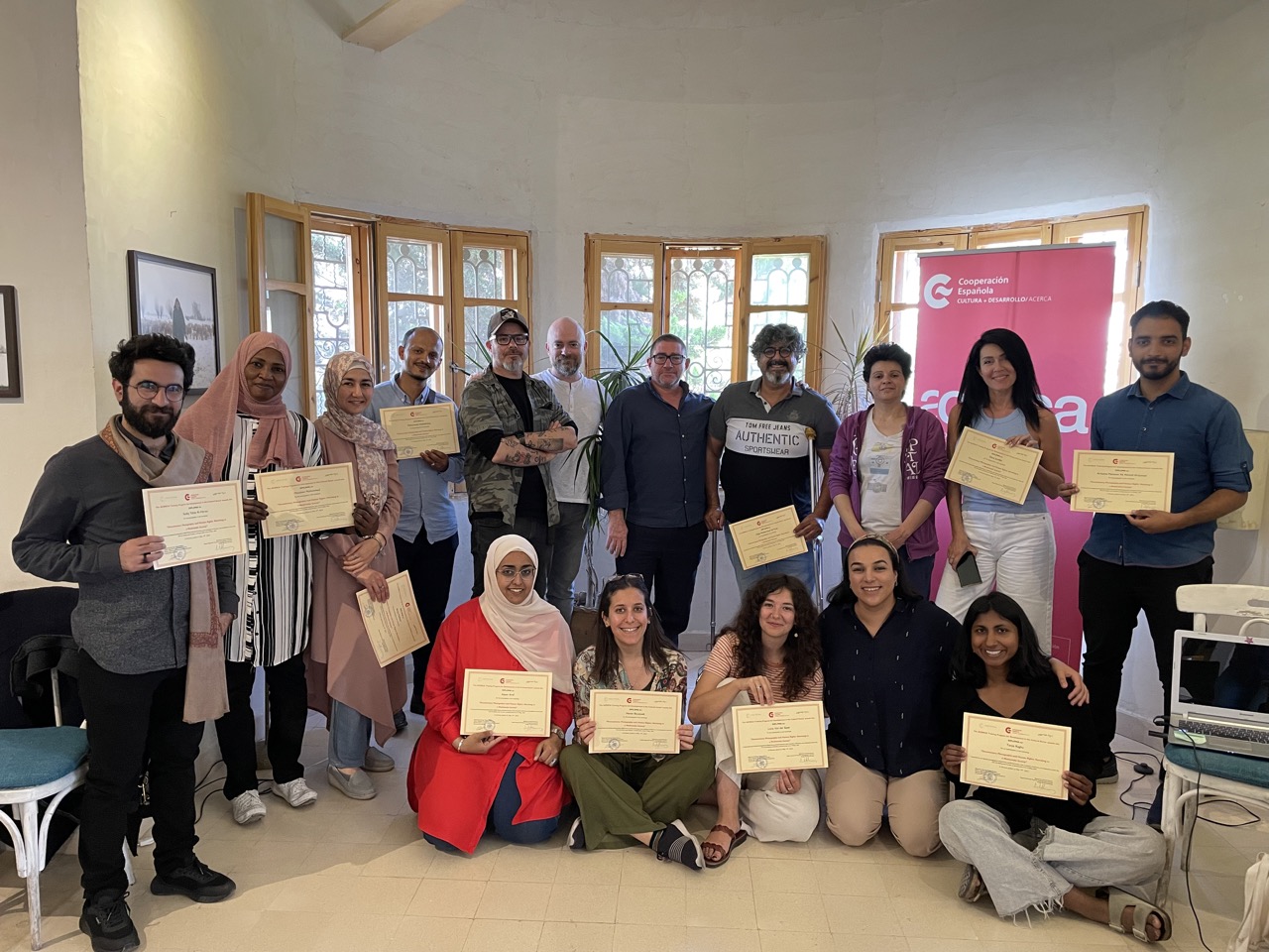 Finalmente, el último día de la formación, estuvo dedicado a la puesta en común de los trabajos prácticos llevados a cabo en los días anteriores y a la entrega de diplomas a los asistentes por parte de Santiago Morán, coordinador General de la Cooperación Española en Jordania, y Linda Al Khoury, fotógrafa jordana e impulsora del Festival de la Imagen de Amán.