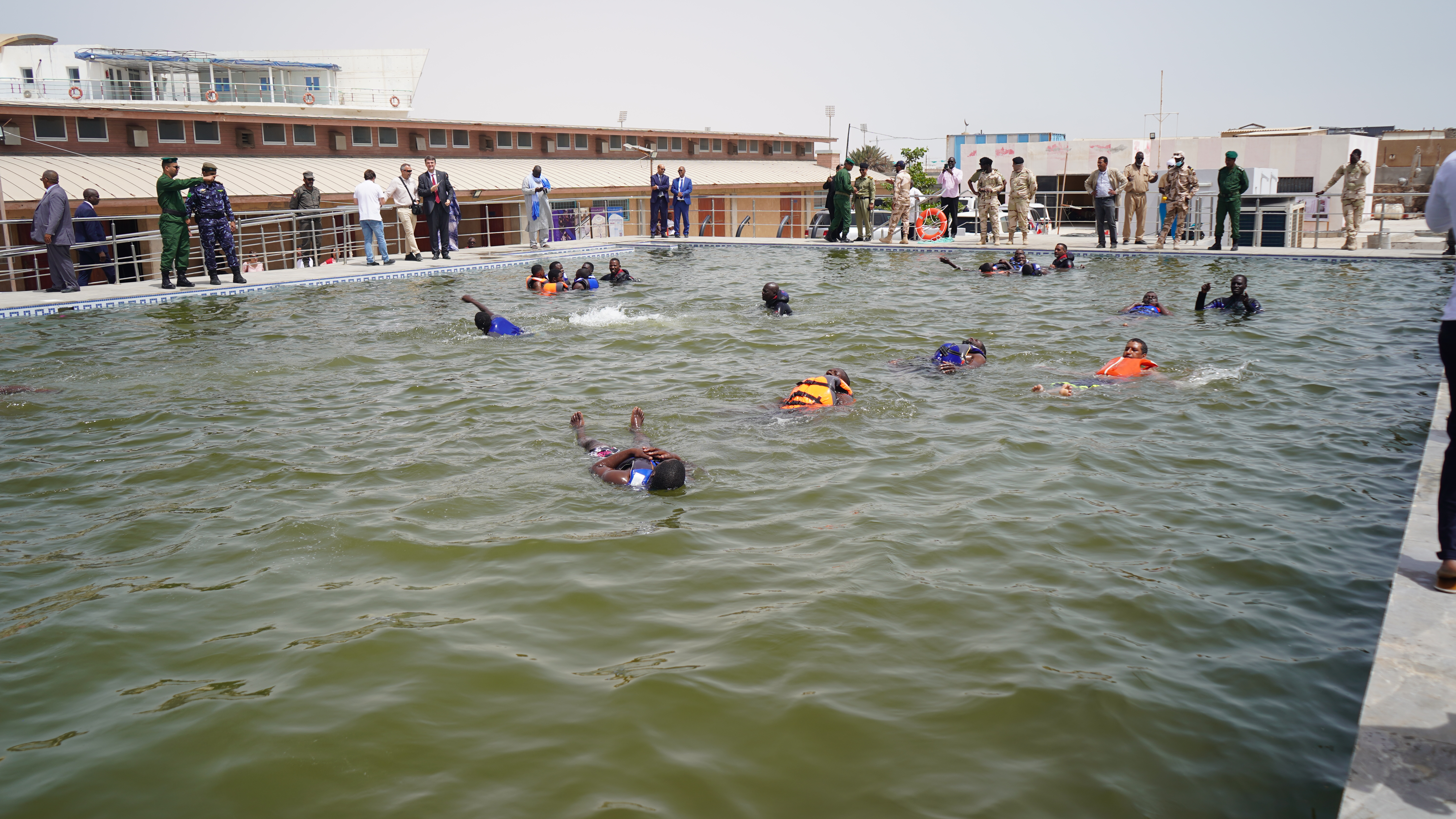 La piscina educativa de agua de mar, construida en el Centro de Cualificación y Formación en Pesca (CQFMP) de Nouadibou, permite realizar, entre otras, capacitaciones sobre seguridad en el mar destinadas a las y los pescadores artesanos.