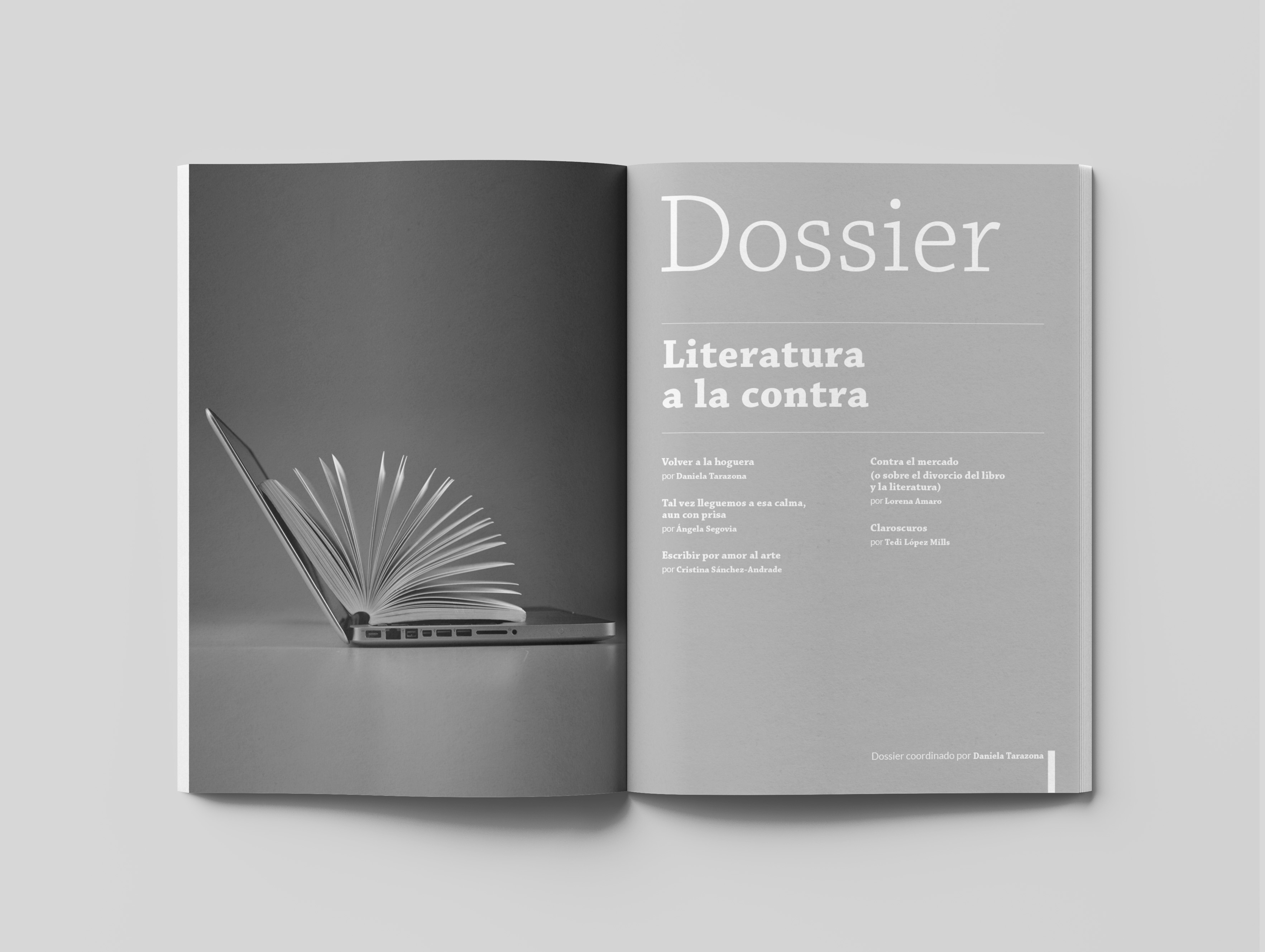 La edición de marzo incluye además un DOSSIER coordinado por escritora mexicana Daniela Tarazona y dedicado a la «Literatura a la contra». El dossier, que incluye también los textos de a Ángela Segovia, Cristina Sánchez-Andrade, Lorena Amaro y Tedi López Mills, profundiza en algunos textos que se han caracterizado por manifestar diversas formas de oposición (al poder, al trabajo, etc.).