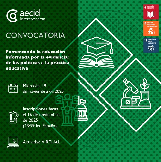 La toma de decisiones en el ámbito educativo debe estar fundamentada en el rigor científico. Te invitamos a esta sesión formativa esencial dirigida a gestores y responsables de políticas educativas en América Latina. Organizada por FECYT (Fundación Española para la Ciencia y la Tecnología). Objetivo Principal: Sensibilizar sobre la importancia de adoptar decisiones y estrategias educativas respaldadas por la evidencia científica, promoviendo una mirada crítica ante prácticas sin sustento empírico. Objetivos Clave Fomentar la mirada crítica y el análisis de casos aplicados. Promover la comprensión del papel del contexto en la aplicación de la investigación educativa. Difundir recursos y herramientas exitosas adaptables a diferentes entornos. Impulsar la valoración del impacto y la viabilidad de las estrategias. Dirigido a Responsables y personal técnico con capacidad de influencia en decisiones educativas: Ministerios y consejerías de educación. Centros de formación e innovación docente. Universidades e instituciones de enseñanza superior. Centros de investigación y think tanks. Países Destinatarios: Argentina, Bolivia, Brasil, Chile, Colombia, Costa Rica, Cuba, Ecuador, El Salvador, España, Guatemala, Honduras, México, Nicaragua, Paraguay, Perú, República Dominicana, Panamá, Uruguay y Venezuela. Más información e inscripciones